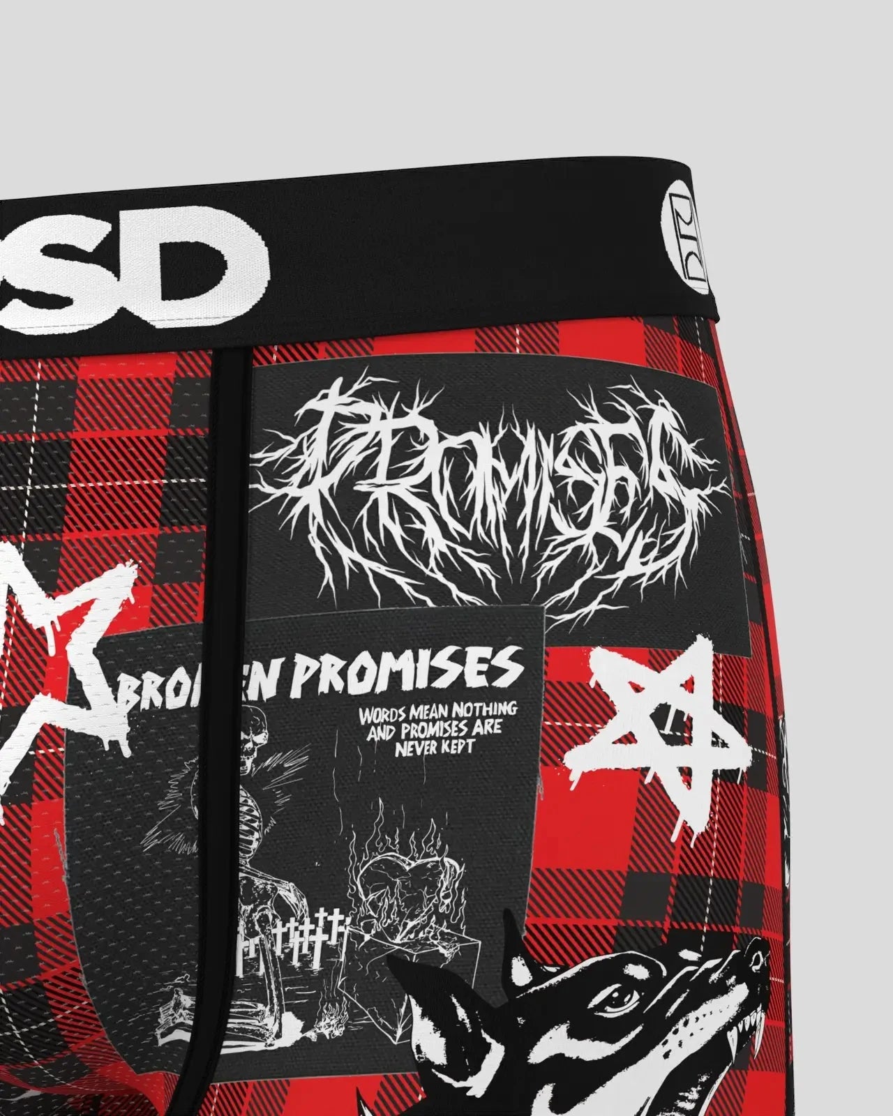 Words mean nothing and promises are never kept. From Broken Promises x PSD. the Sabotage briefs include our ultra-comfortable Signature WaistBand. a breathable MicroMesh pouch. and four-way stretch. The PSD 7 Standard Length Briefs won’t roll or ride and were built for everything. from everyday wear to your toughest workouts.