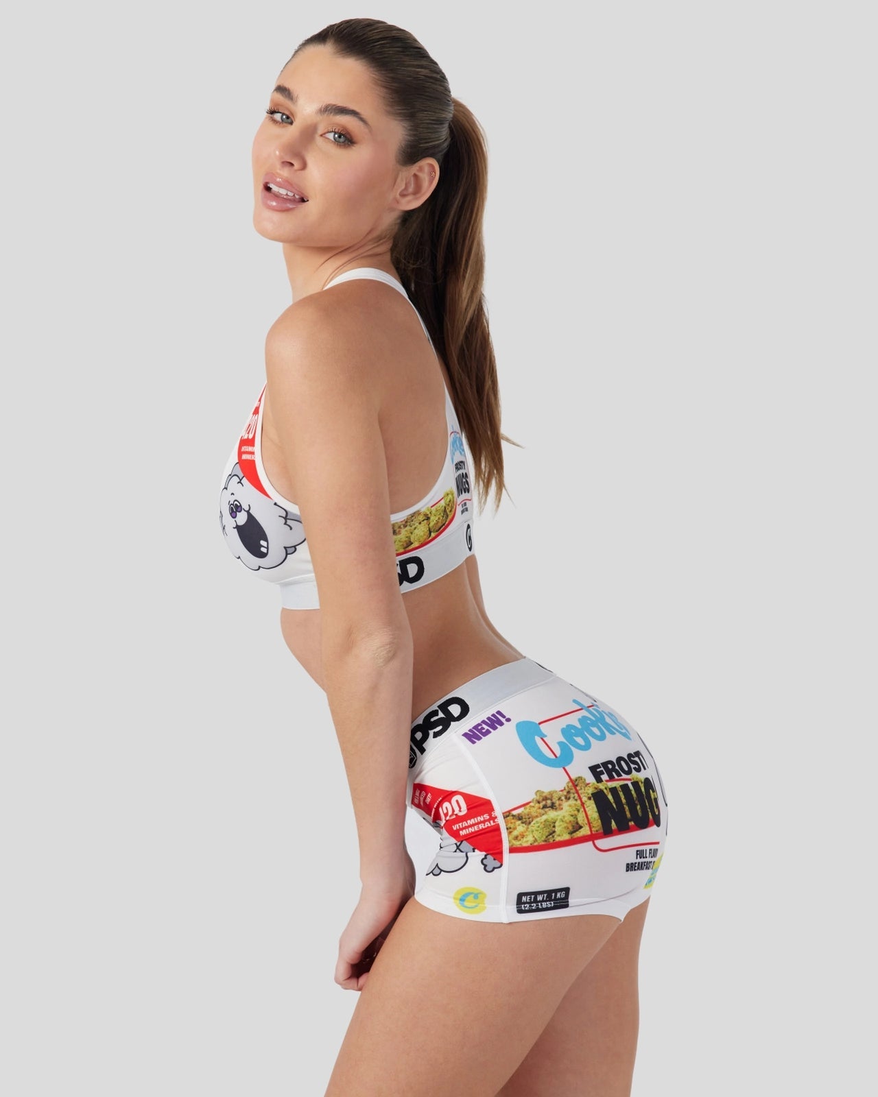 Like your favorite breakfast cereal but so much better. the newest drop from Cookies x PSD is full of earthy flavor. Made from a silky poly blend. the Frosty Nugs sports bra is breathable yet slightly compressive. bringing you the comfort and support you need for everything you get into.