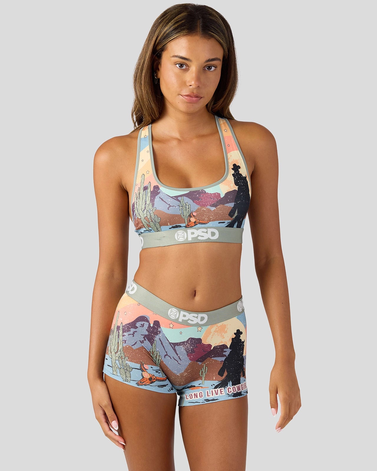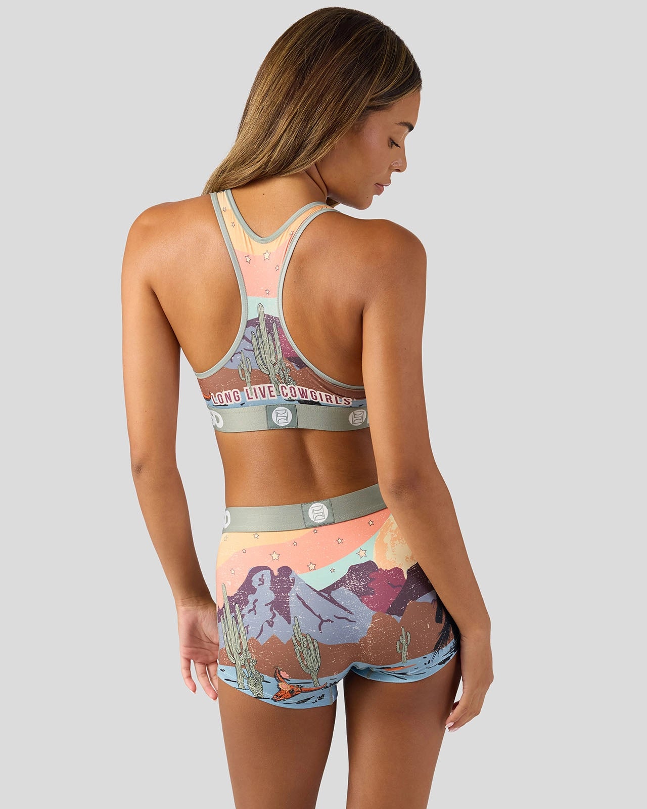 Live out your cowgirl fantasies and ride into the sunset in this new women’s look. The Desert Sunset Sports Bra is made from a silky poly blend that’s breathable yet slightly compressive. bringing you the comfort and support you need for everything you get into.