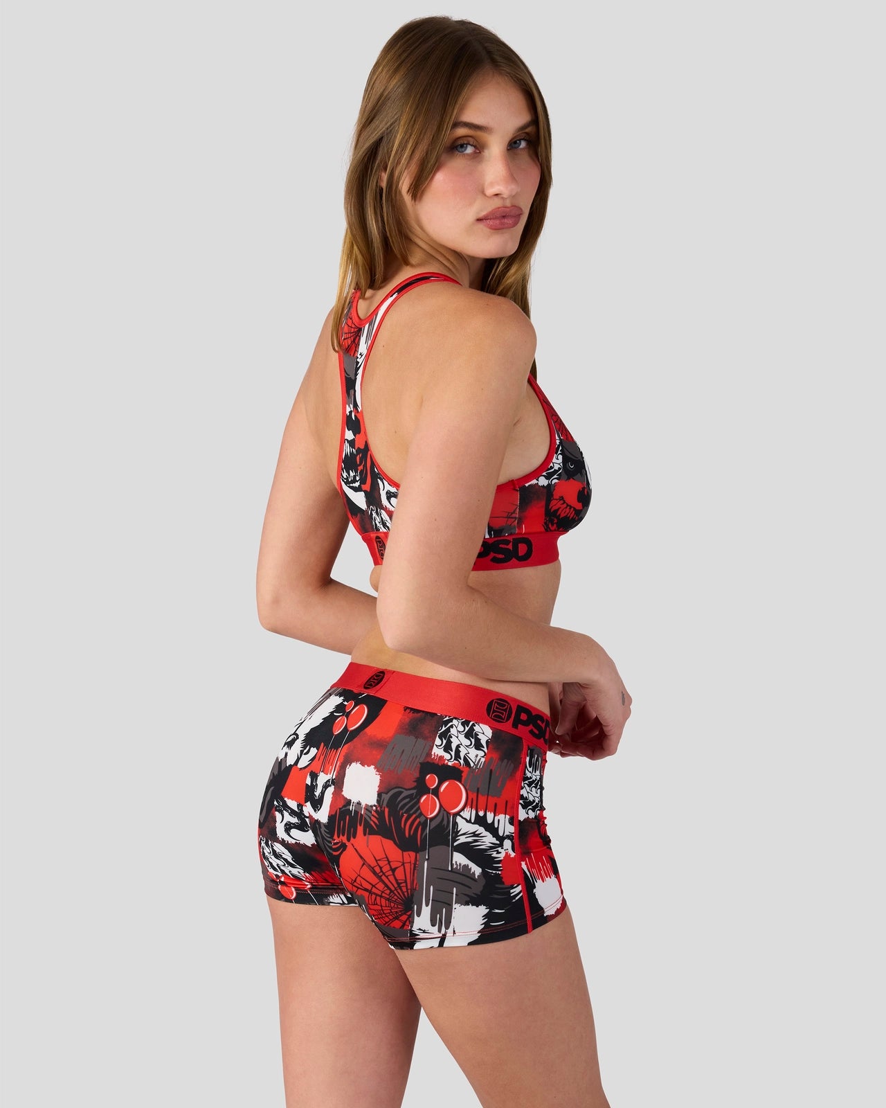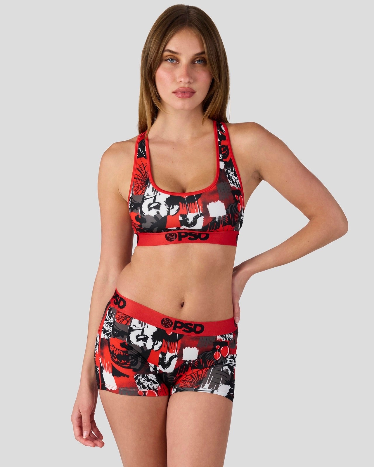 Welcome back to Derry in this terrifying new drop from It x PSD. Featuring the menacing face of Pennywise and his infamous red balloon. the Checkers Boy Short is made from a silky poly blend with a comfortable full-coverage. keep-you-in fit. The PSD boy shorts are perfect for everyday wear and working out.