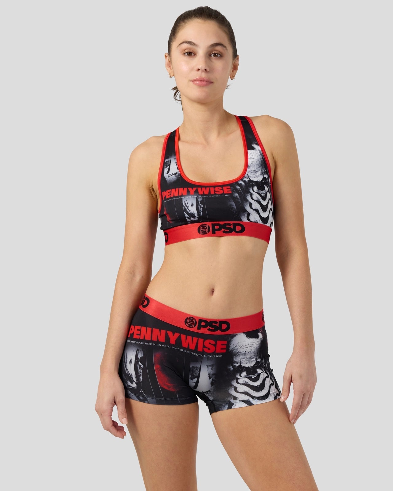 Clowns don’t get any scarier than this. Featuring one of Pennywise’s most famous lines. the IT x PSD Pennywise Sports Bra is made from a silky poly blend and is breathable yet slightly compressive. bringing you the comfort and support you need for everything you get into.