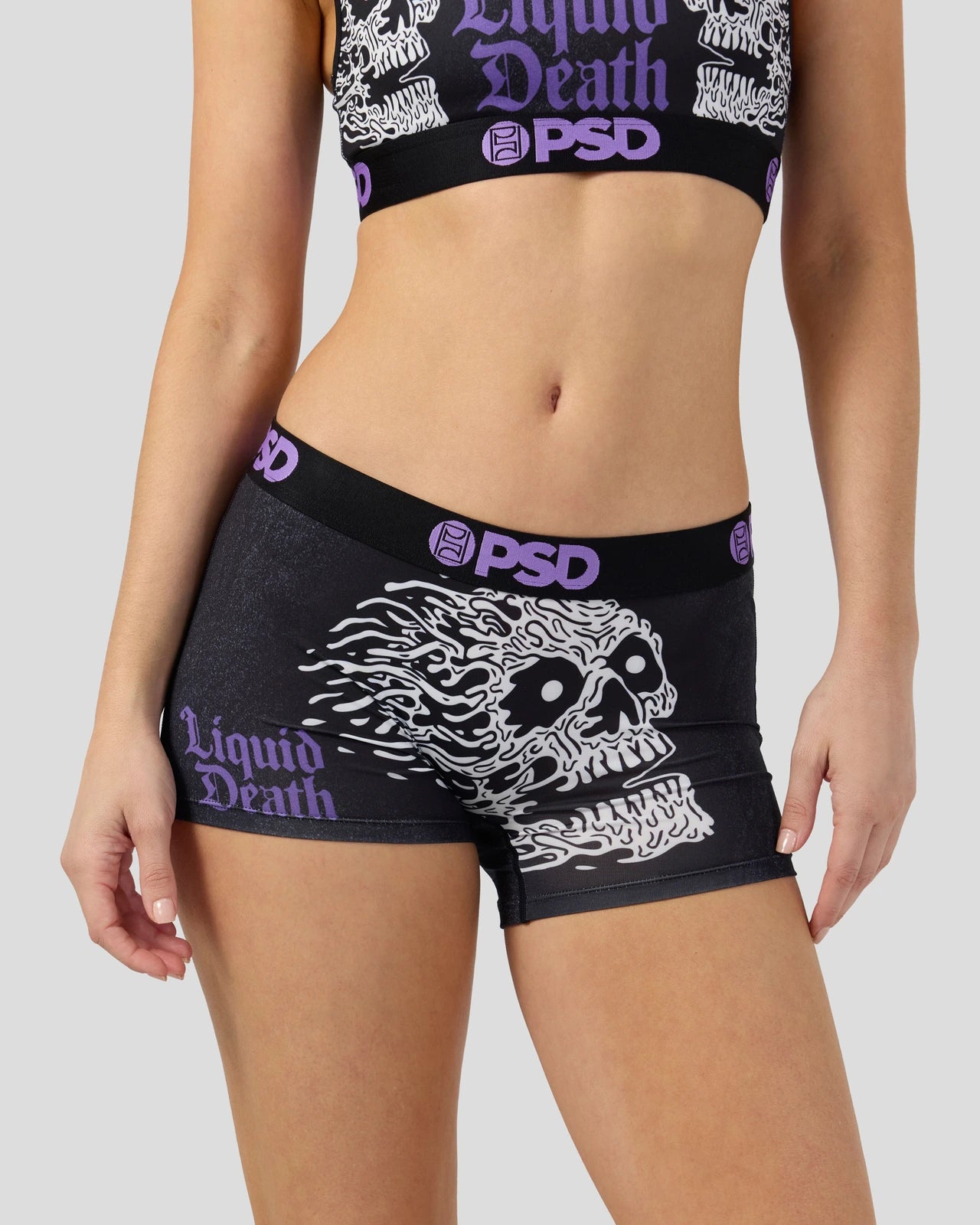 From Liquid Death x PSD. this new drop is face-melting good. The Liquid Death Boy Short is made from a silky poly blend with a comfortable full coverage. keep-you-in fit. The PSD boy shorts are perfect for everyday wear and working out.