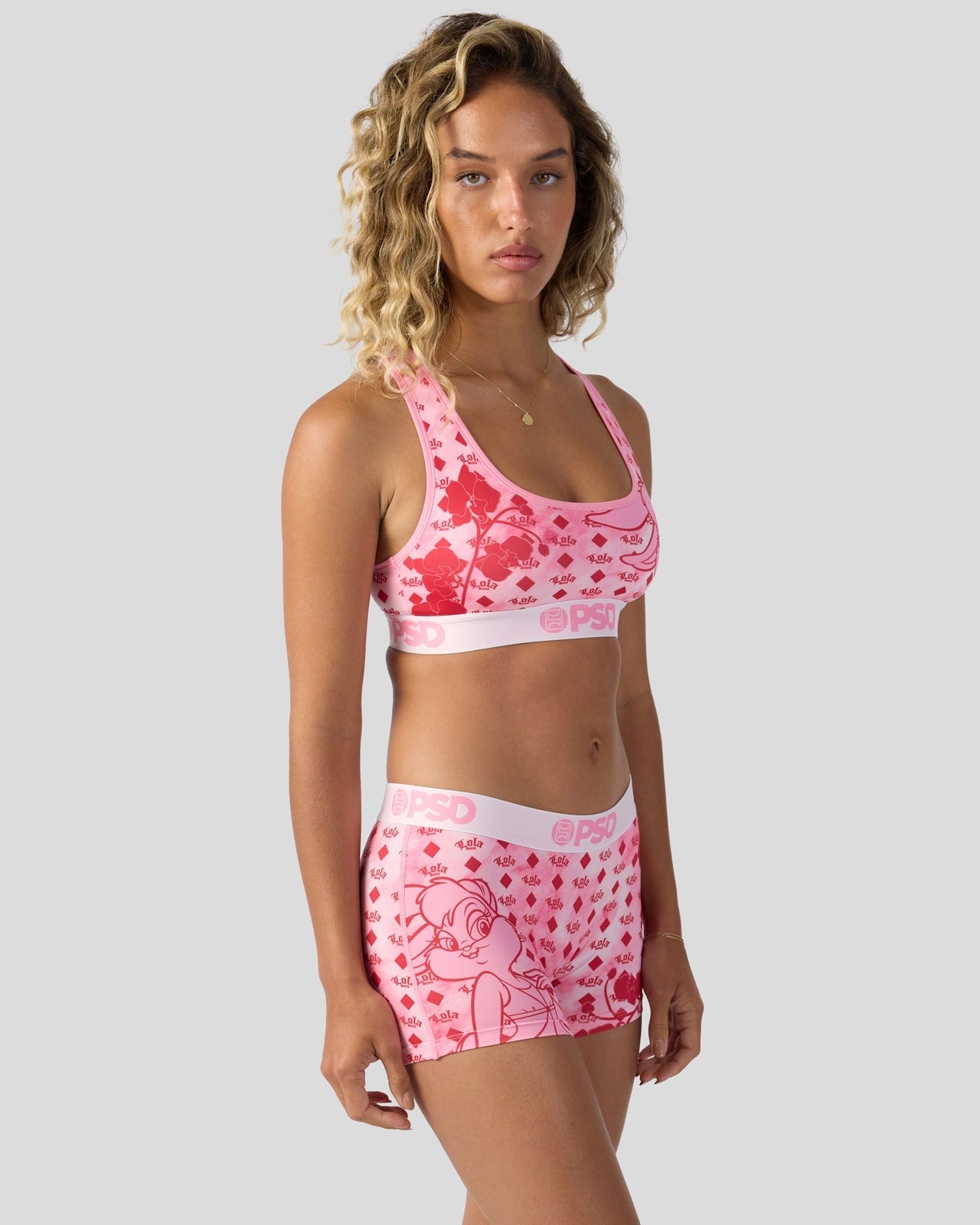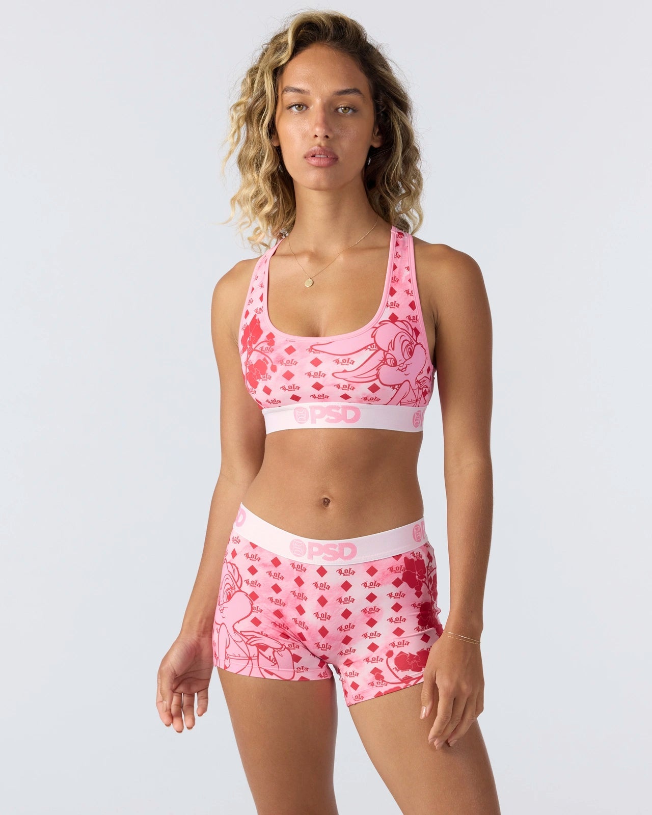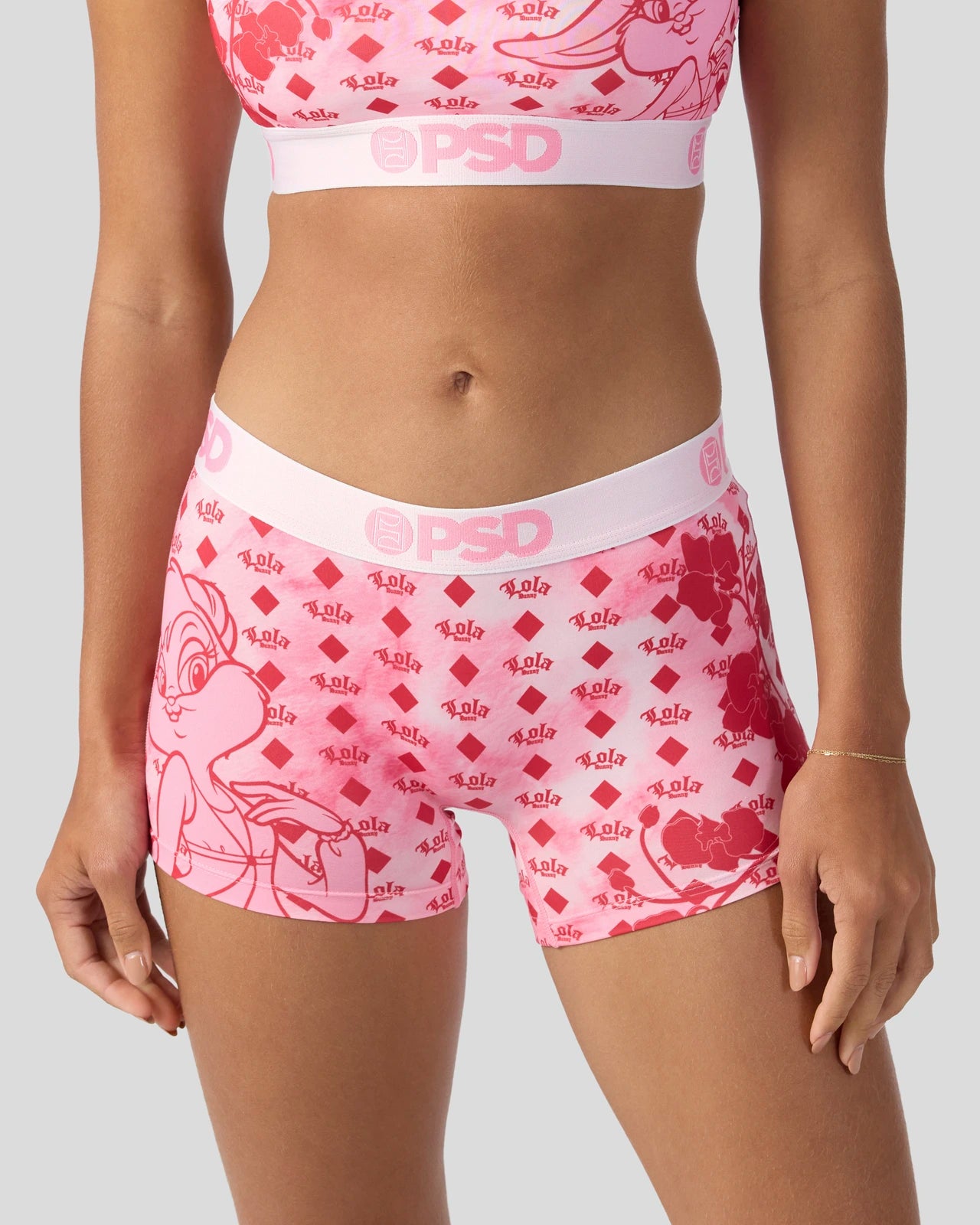 This look from Looney Tunes x PSD features a feminine luxury-inspired print. The Lola Lux Boy Short is made from a silky poly blend with a comfortable full coverage. keep-you-in fit. The PSD boy shorts are perfect for everyday wear and working out.