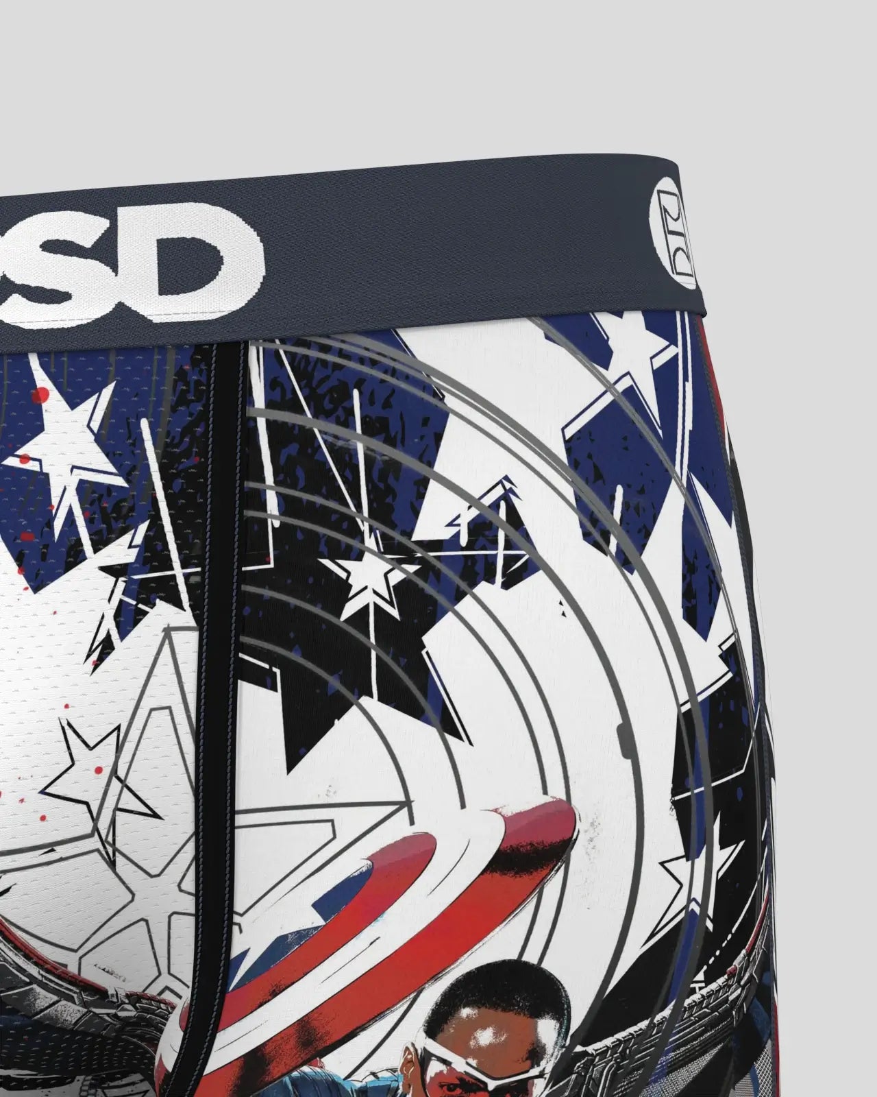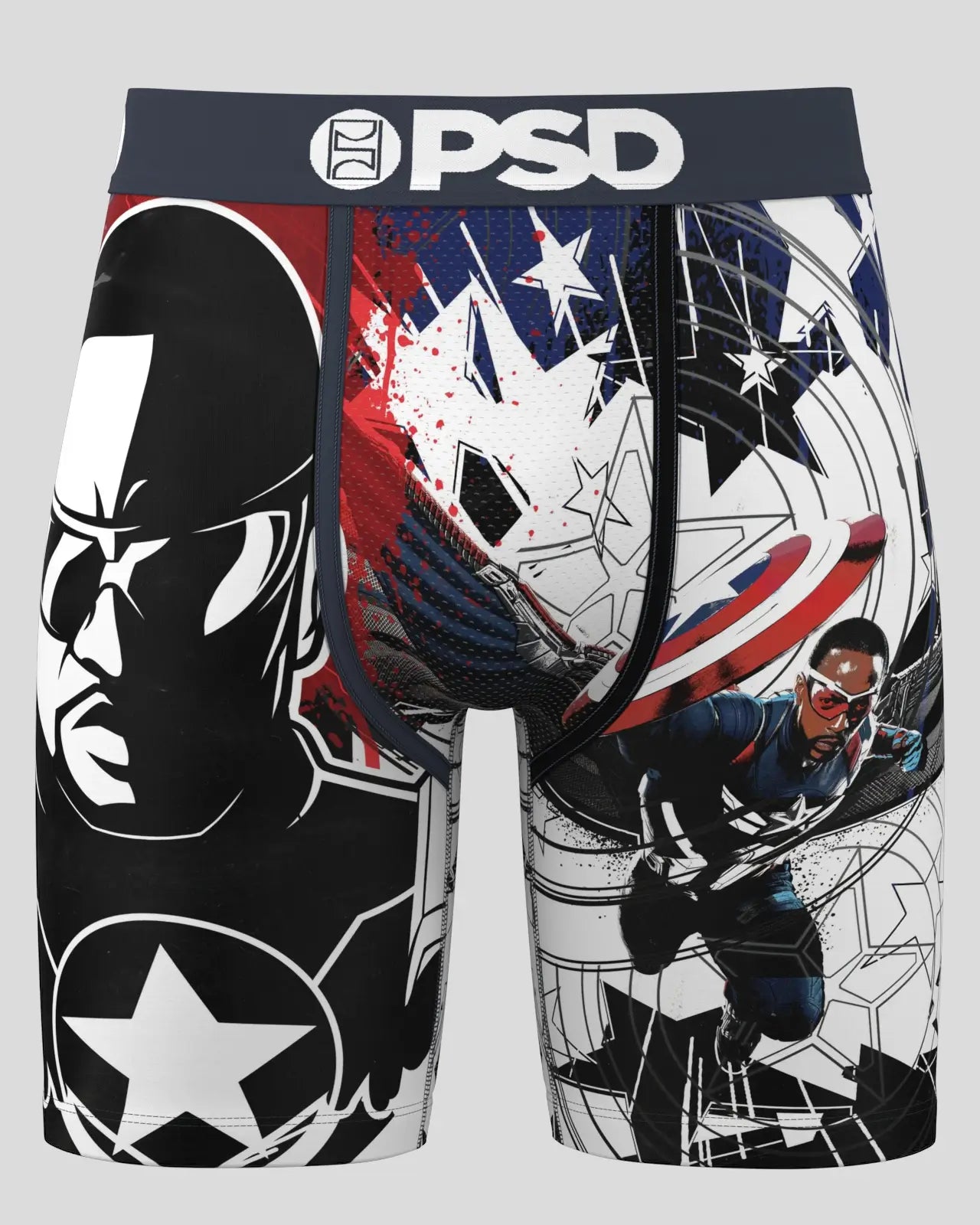 Don’t miss this new drop from Marvel featuring. Sam Wilson—formally the Falcon now taking up the mantle of Captain America. The Falcon Cap briefs include our ultra-comfortable Signature WaistBand. a breathable MicroMesh pouch. and four-way stretch. The PSD 7 Standard Length Briefs won’t roll or ride and were built for everything. from everyday wear to your toughest workouts.
