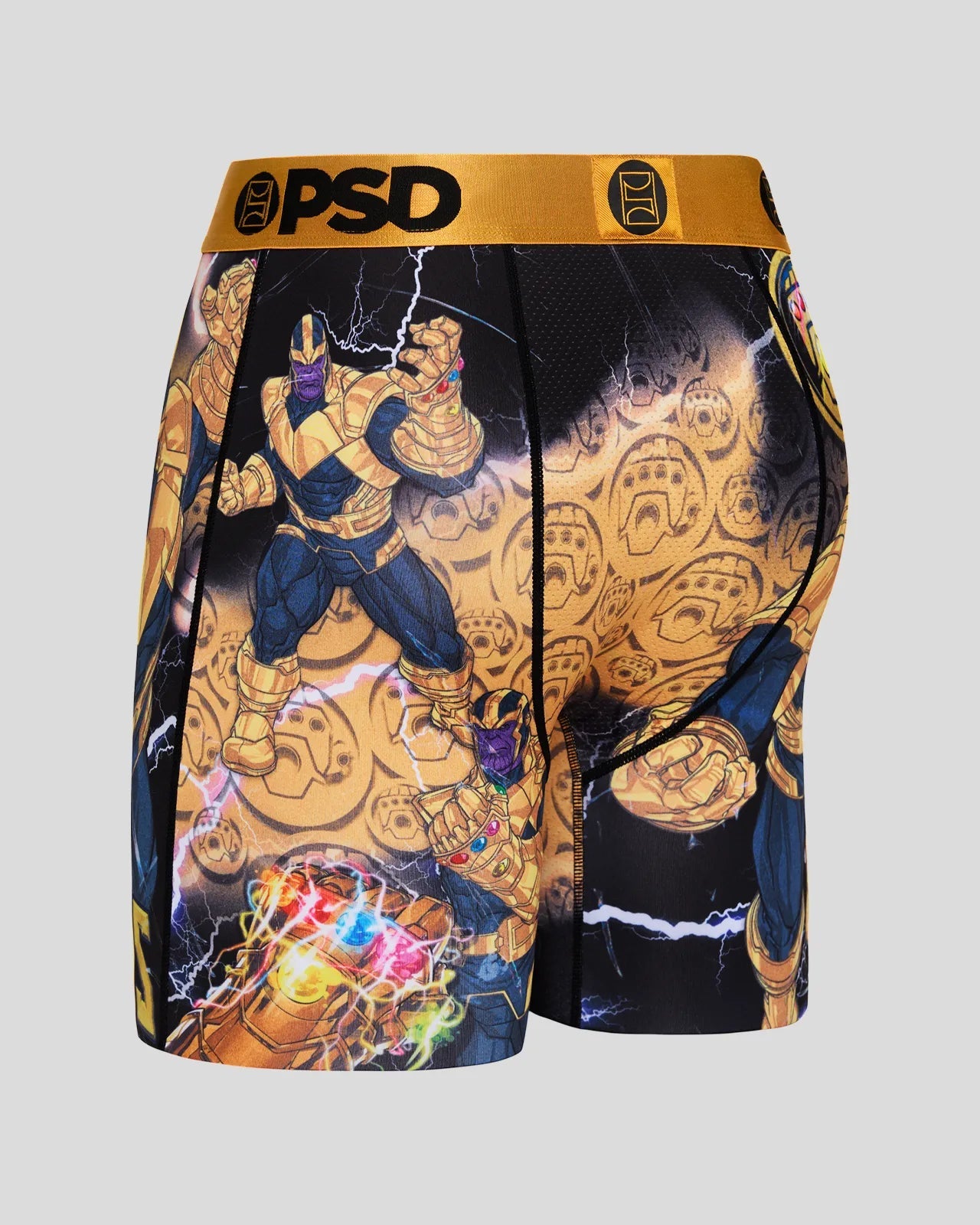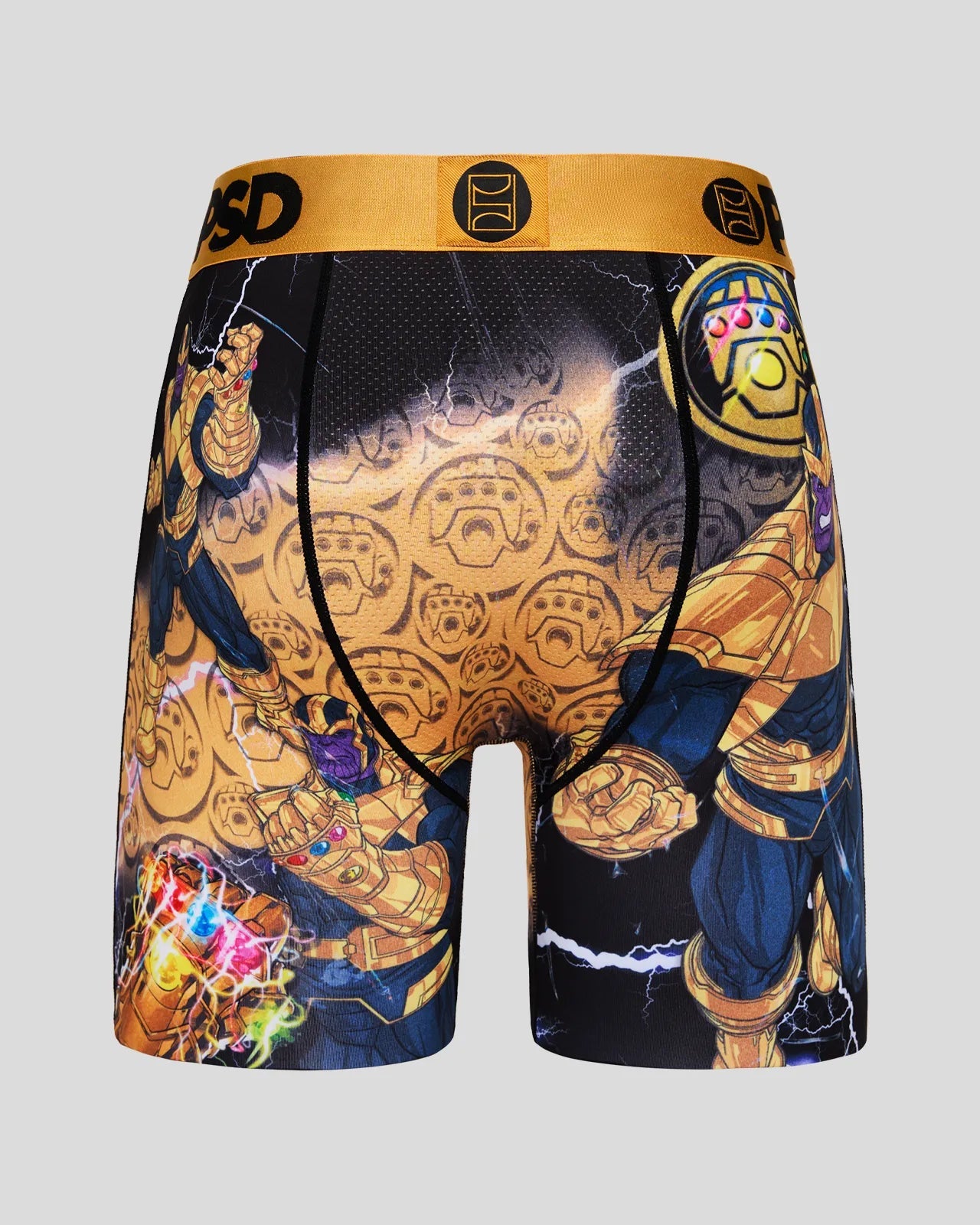 This print features the Mad Titan himself with his gauntlet glove and six powerful infinity stones. With four-way stretch. a breathable MicroMesh pouch. and durable flatlock stitching. these Thanos briefs were built to hold up for everything from everyday wear to the toughest workouts.