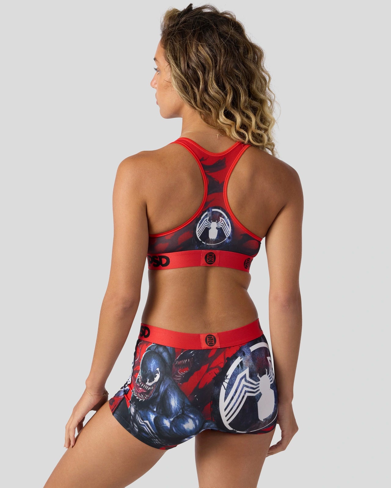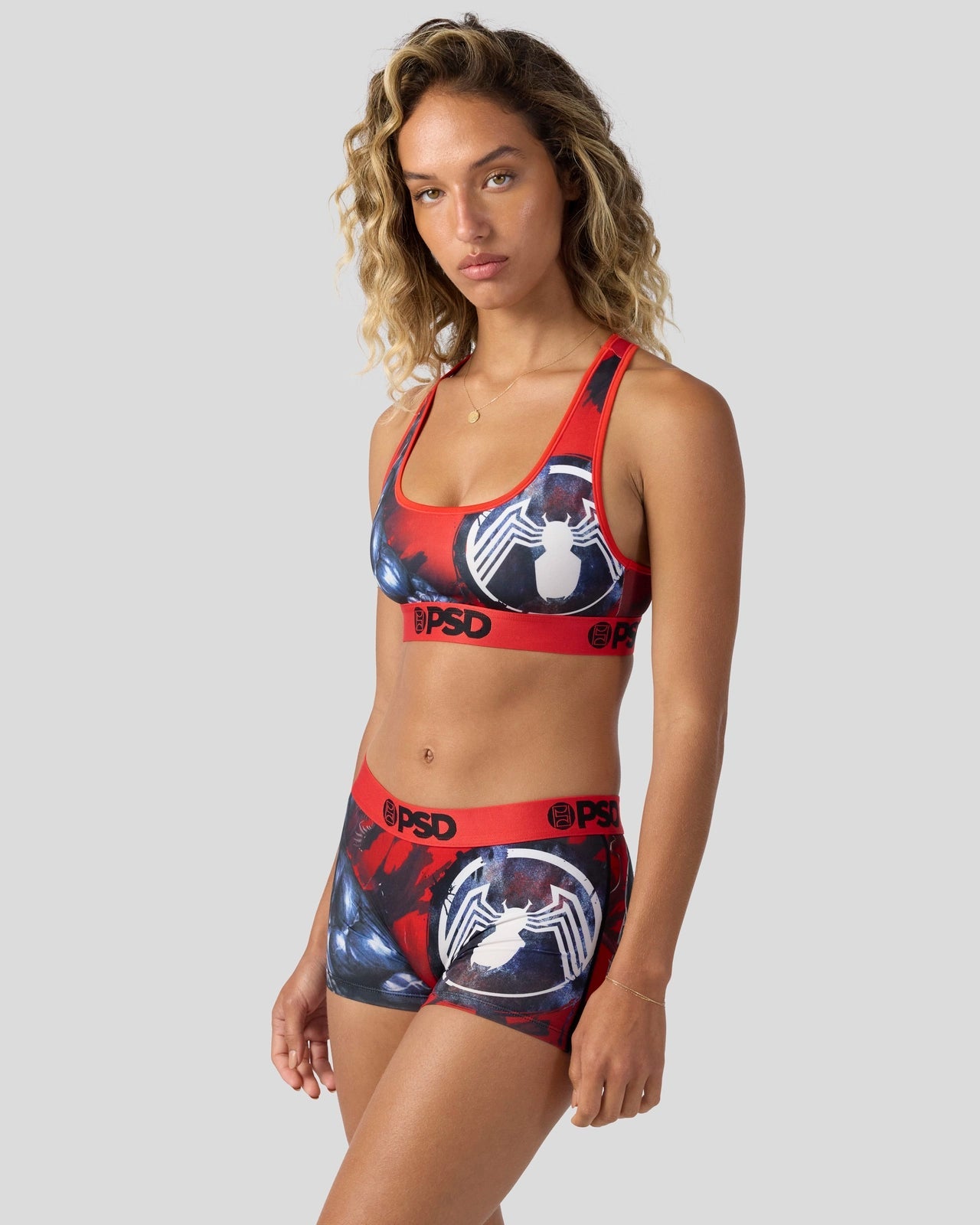 Warning: You might create a symbiotic relationship with this new Marvel look. The Venom Sports Bra is made from a silky poly blend and is breathable yet slightly compressive. bringing you the comfort and support you need for everything you get into.