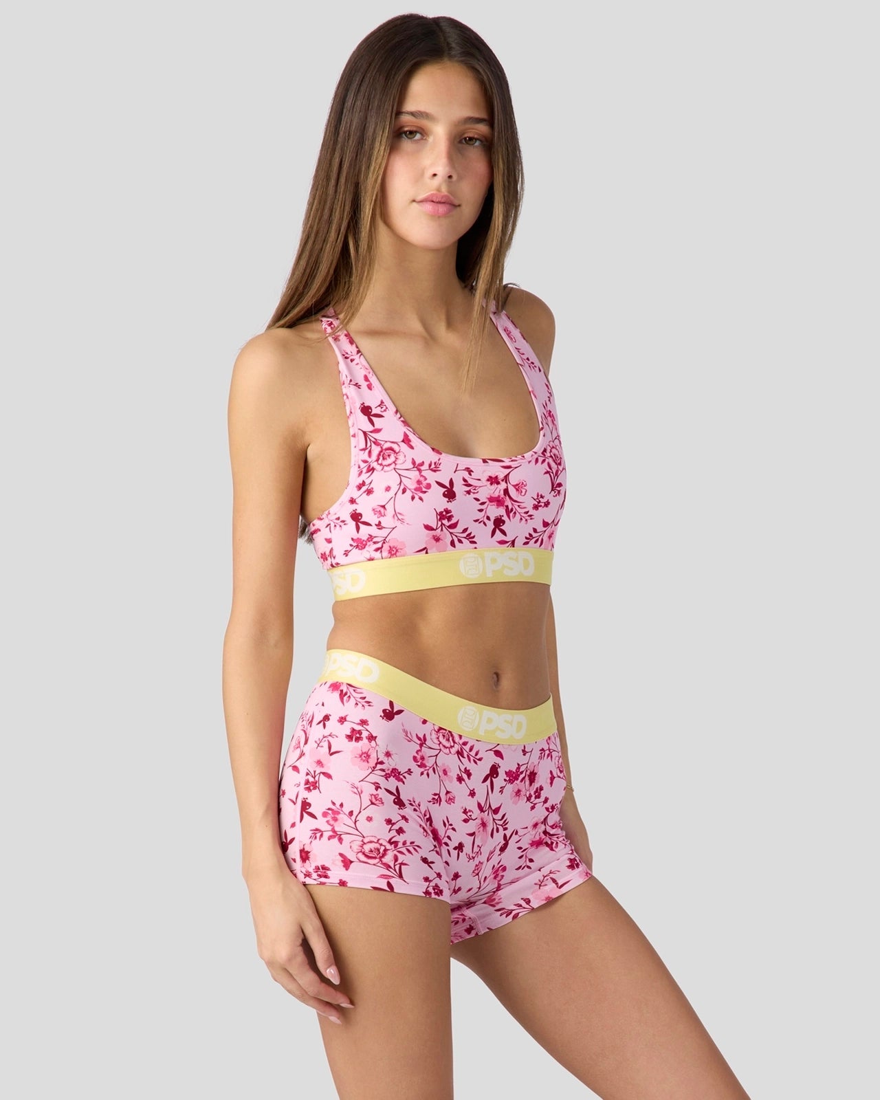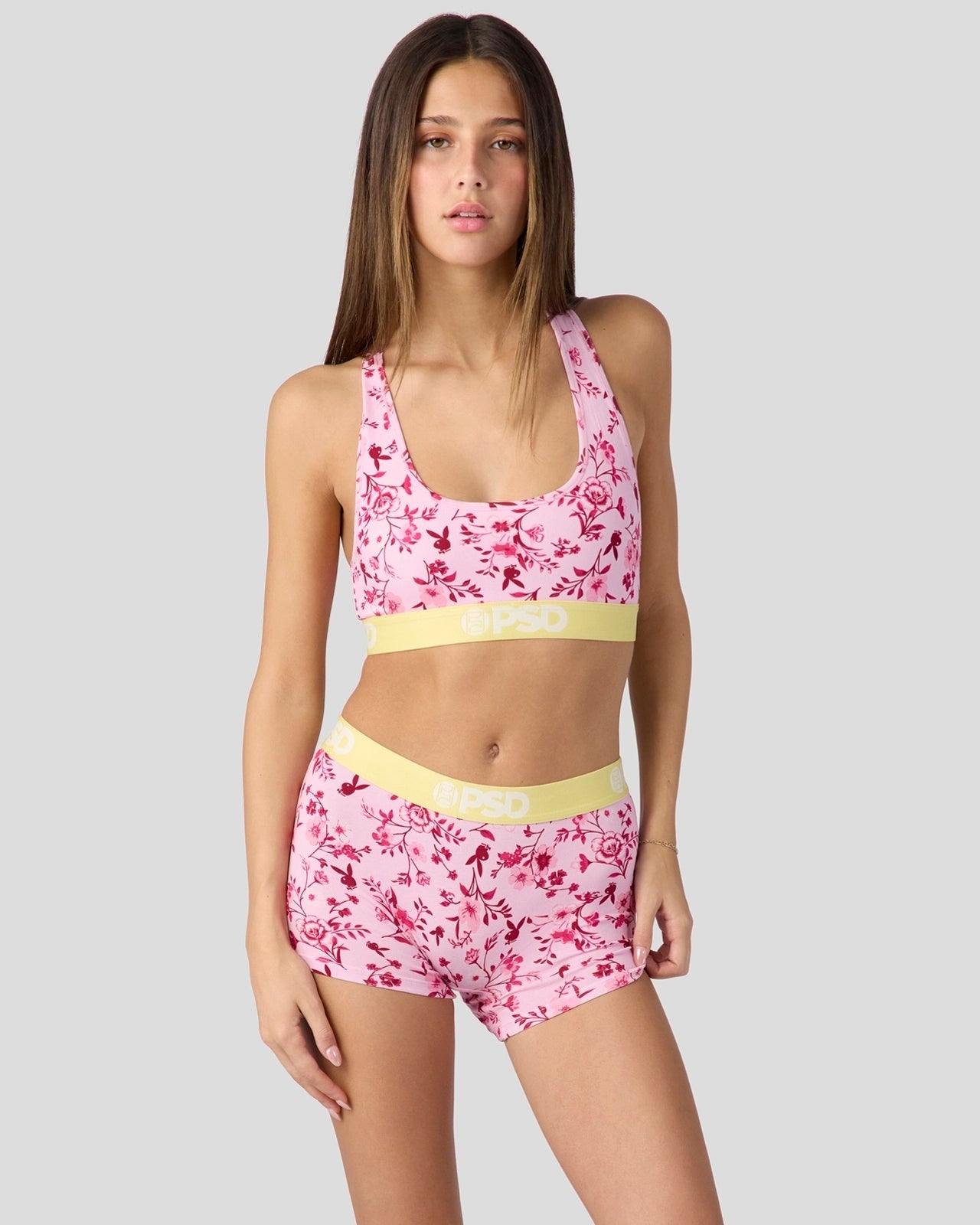 Featuring a ditsy floral print with hidden buddies. don’t miss this new look from Playboy x PSD. Made of a super soft modal blend. the Ditz Modal Sports Bra has a loungey feel. perfect for those times you don’t want to feel like you’re wearing a bra.