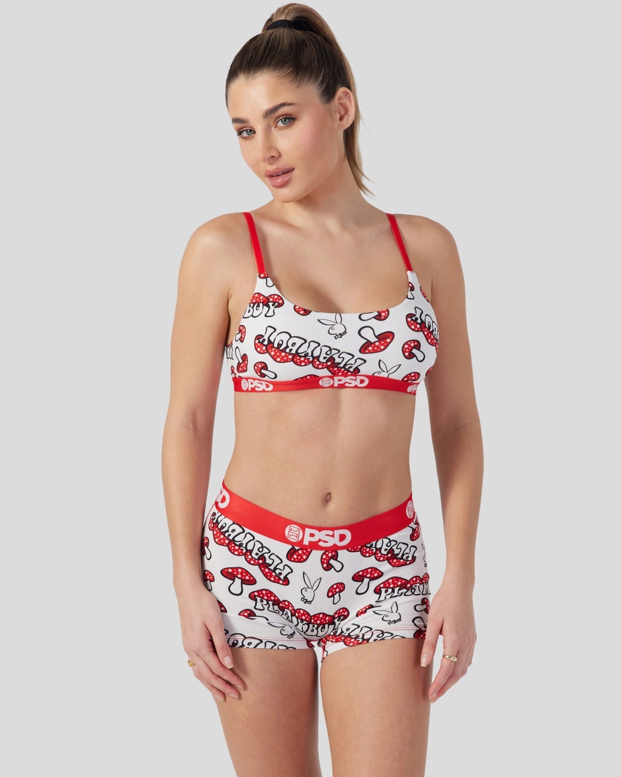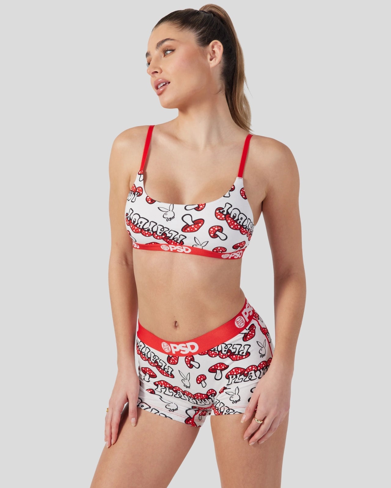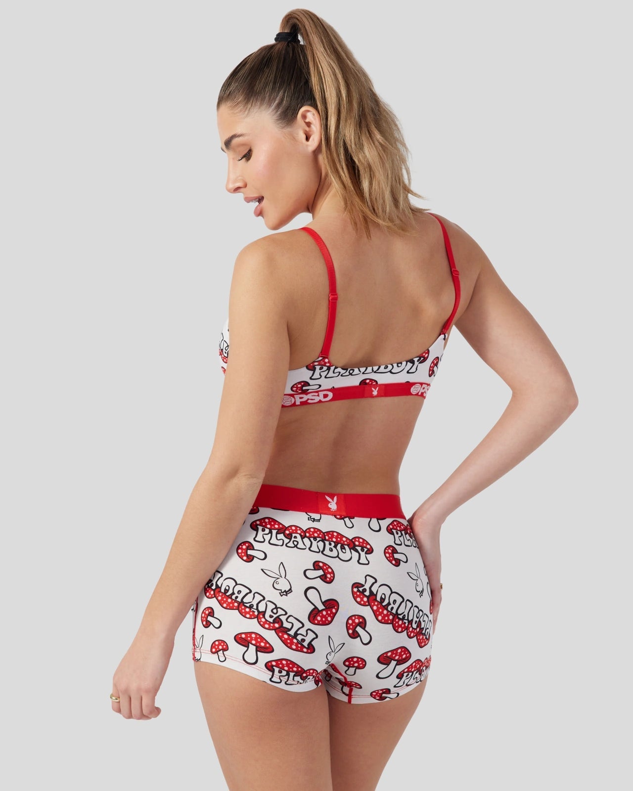Meet the latest from Playboy x PSD. The Mushroom Boy Short is made from a silky poly blend with a comfortable full coverage. keep-you-in fit. The PSD boy shorts are perfect for everyday wear and working out.