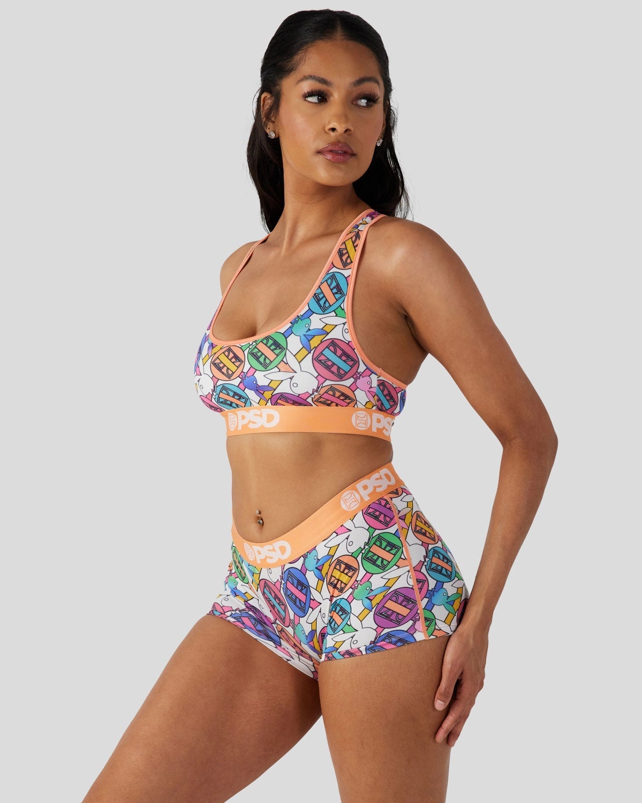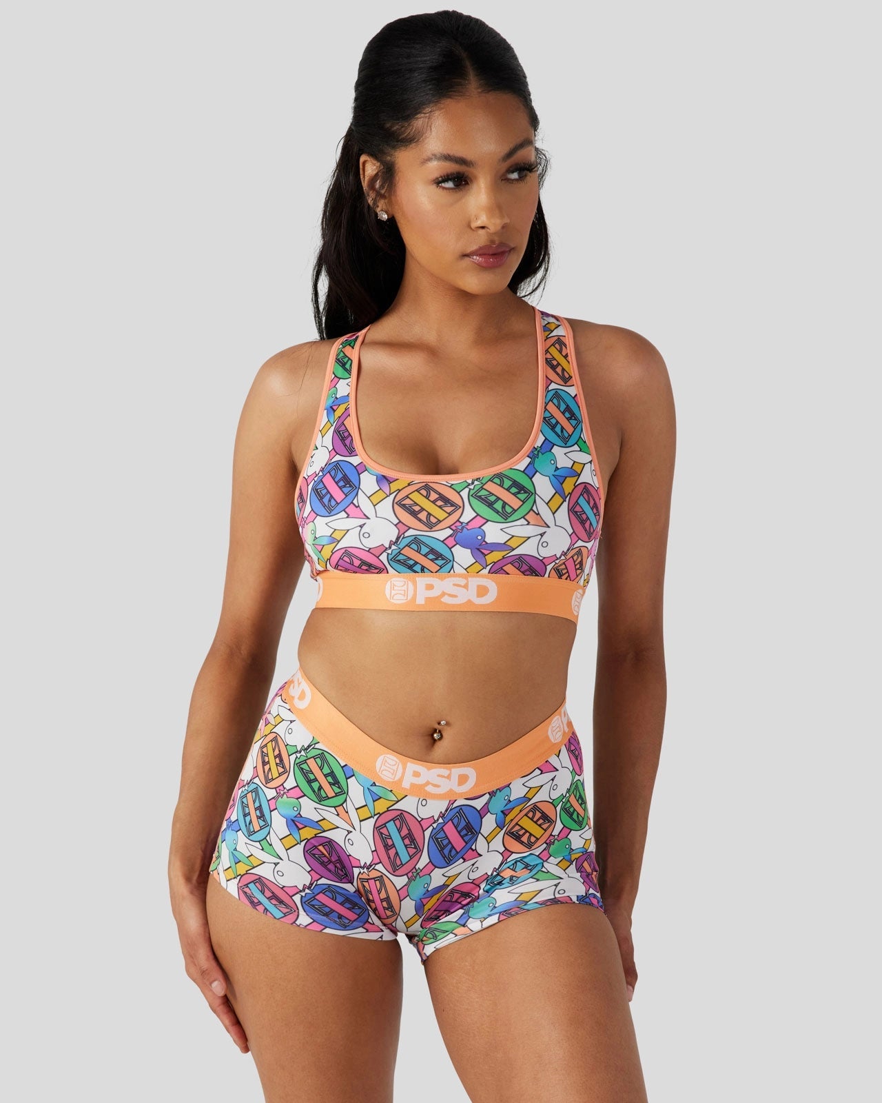 Pretty in pastel. the latest from Playboy x PSD is the perfect way to add some spring to your intimates drawer. The Women’s Geo Sports Bra is made from a silky poly blend and is breathable yet slightly compressive. bringing you the comfort and support you need for everything you get into. This style is available in sizes XS – 5XL.