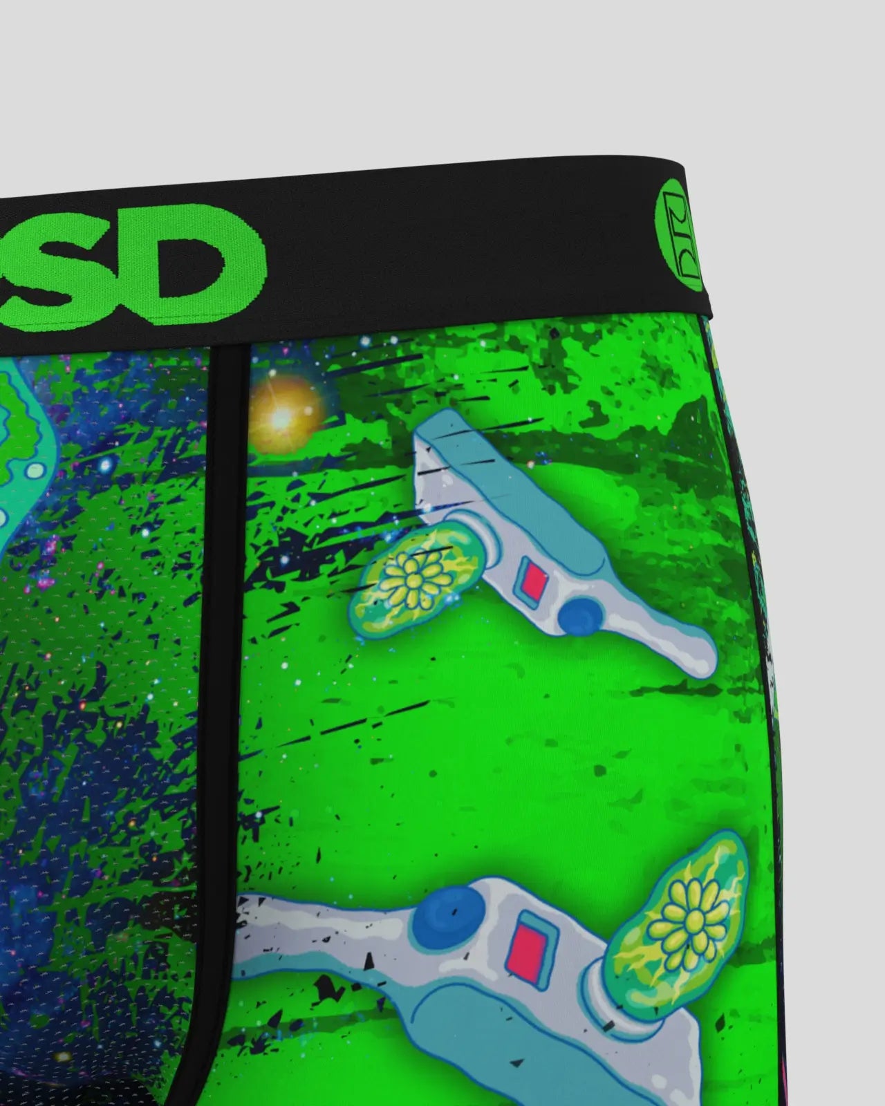 Get lost in the multiverse. The Portal Void briefs from Rick and Morty include our ultra-comfortable Signature WaistBand. a breathable MicroMesh pouch. and four-way stretch. The PSD 7 Standard Length Briefs won’t roll or ride and were built for everything. from everyday wear to your toughest workouts.