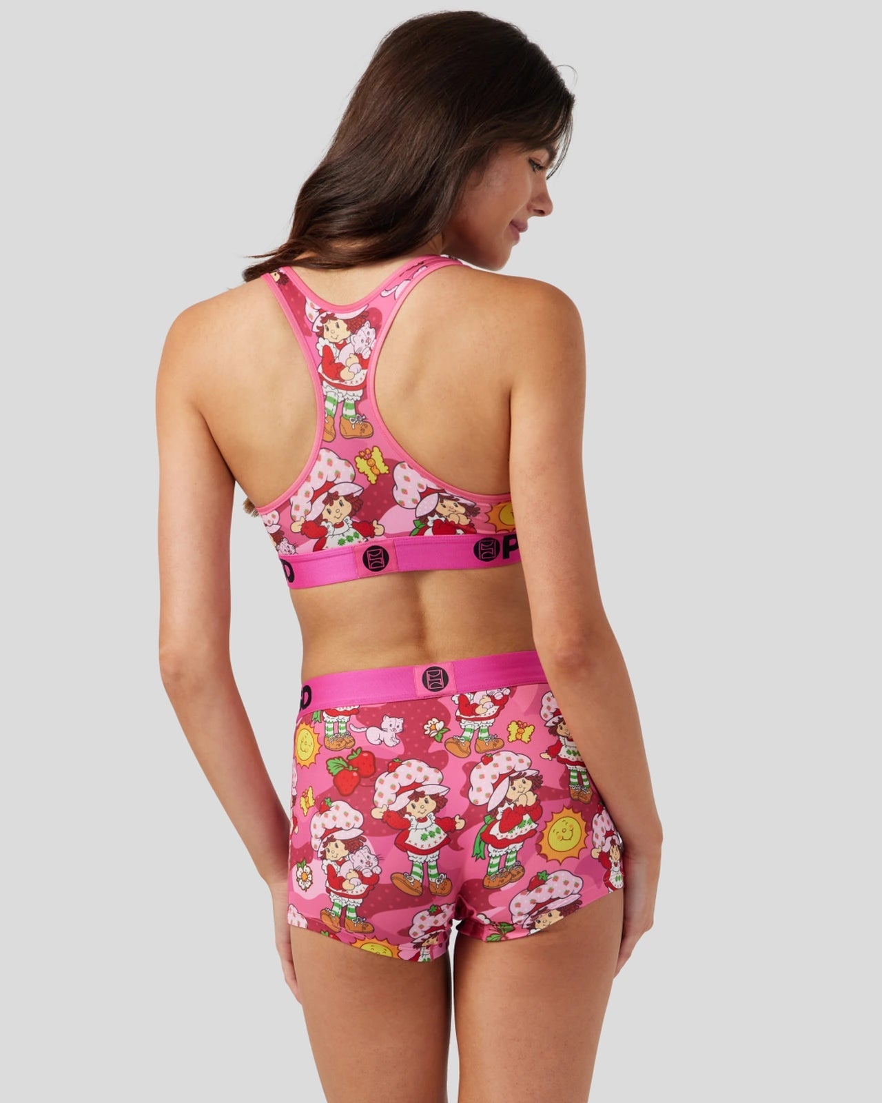 Camo takes a girly turn with the newest drop from Strawberry Shortcake x PSD. The Camo Sports Bra is made from a silky poly blend and is breathable yet slightly compressive. bringing you the comfort and support you need for everything you get into.